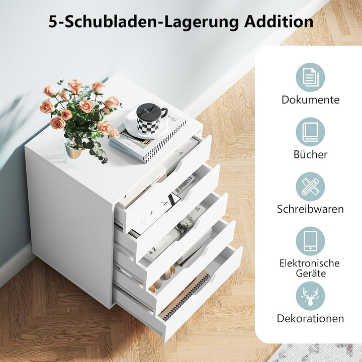 - 【Grosser Stauraum】Die Innenmasse der 5 grossen Schubladen betragen 40 x 33 cm x 7 cm, wodurch genug Platz für Snacks, Kosmetika, Büroutensilien, etc. ist. Die glatten Metallschienen ermöglichen ein einfaches Öffnen und Schliessen. Die Oberseite
