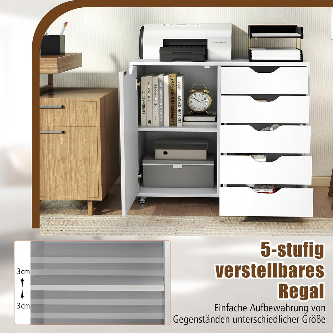 - 【Grosser Stauraum】Die geräumige Arbeitsplatte kann Ihren Drucker oder Scanner aufnehmen. Dieser Aktenschrank mit fünf Schubladen und eintürigem Schrank bieten idealen Stauraum für Stifte, Hefter, Taschenrechner und andere Büromaterialien.