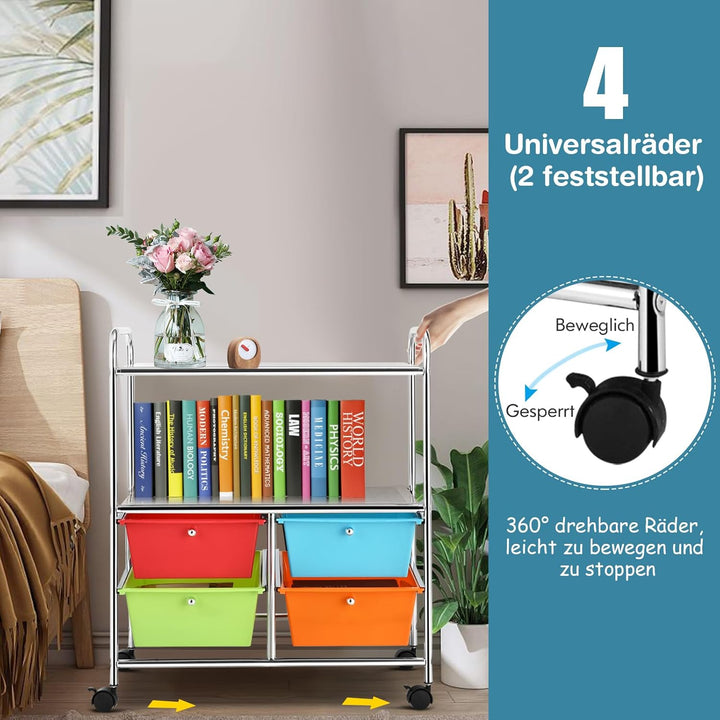 - 【Rausnehmbare Schubladen】Der Mobiler Rollwagen verfügt über 4 separate Schubladen, von denen jede herausgenommen werden kann. Er ist einfach zu bedienen. Zudem erleichtert er auch die Klassifizierung der Artikel.