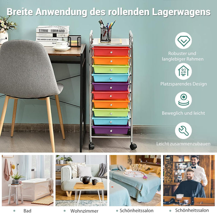 - 【Vielseitig einsetzbar】Vielseitiger 10 Schubladen Aufbewahrungswagen - perfekt für Heim, Büro, Schönheitssalon, Friseurgeschäfte und mehr!