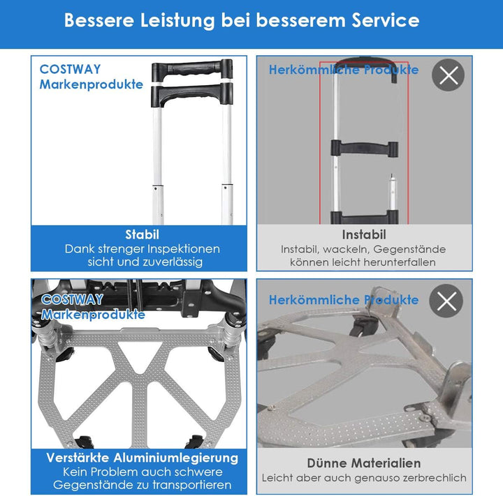- 🧳【Robuste Konstruktion】Der aus einer verdickten Aluminiumlegierung gefertigte Wagen zeichnet sich durch seine hervorragende Belastbarkeit und Haltbarkeit aus. Er kann als Treppensteigwagen verwendet werden, um beim Auf- und Abfahren von Treppen
