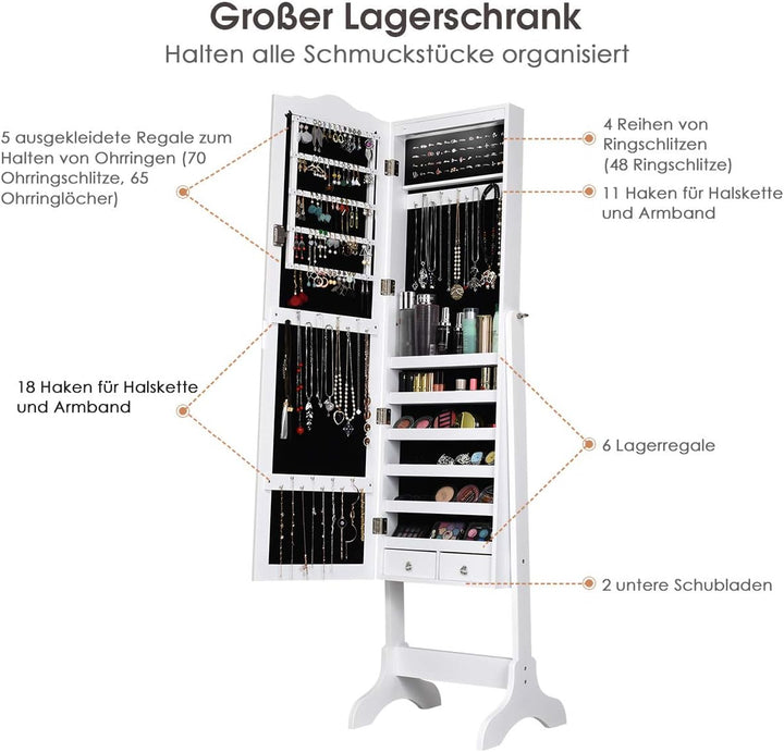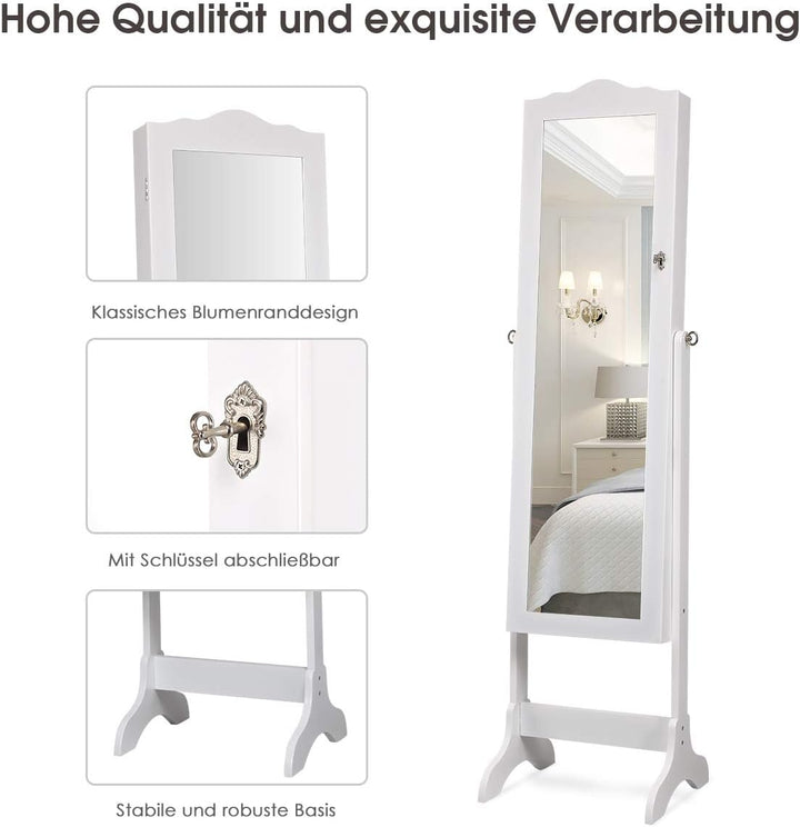 - 【Stabile und sichere Konstruktion】Das freistehende Design sorgt für zusätzliche Stabilität, und Sie können den Schrank beliebig bewegen. Die Spiegeltür ist mit einem Schlüssel abschliessbar, wodurch Ihre wertvollen Schmuckstücke gut geschützt