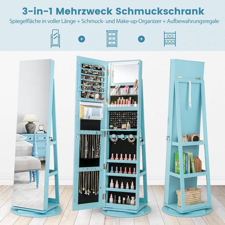 - 💎【3-in-1-Schmuckschrank mit Schloss】Unser Produkt vereint Schmuckschrank, Ganzkörperspiegel und Aufbewahrungsregal in einem. Dieser multifunktionale Schmuckschrank wird Ihrem Leben viel Komfort verleihen. Aus Gründen der Privatsphäre ist dieser