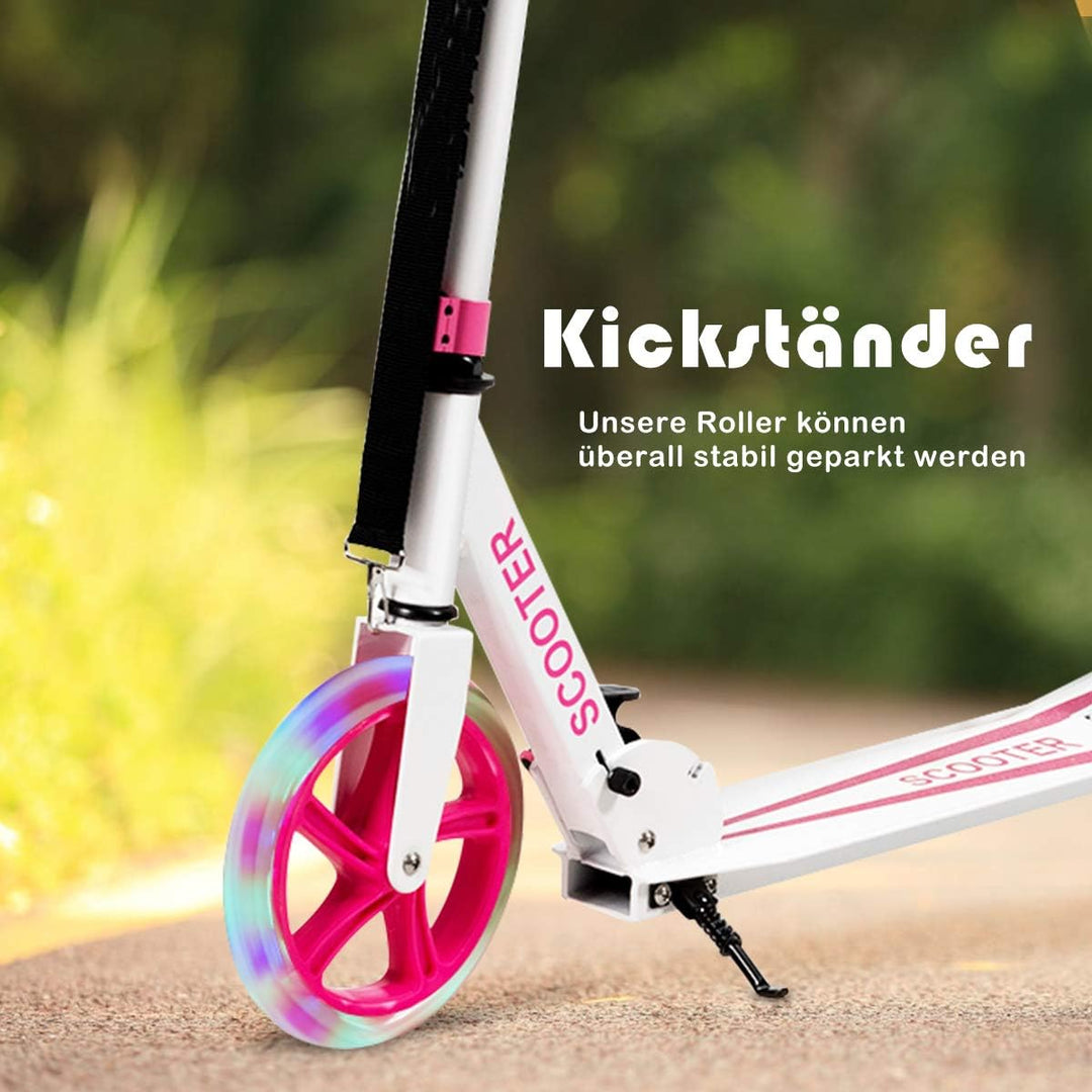 - 【Rollen mit attraktiven LED-Lichtern】Die Rollen unseres Scooters verfügen über eingebaute LED-Lichter, die Ihrem Kind helfen werden, aus der Masse herauszustechen. Der Roller hat einen eingebauten Bewegungssensor, der die Lichter einschaltet,