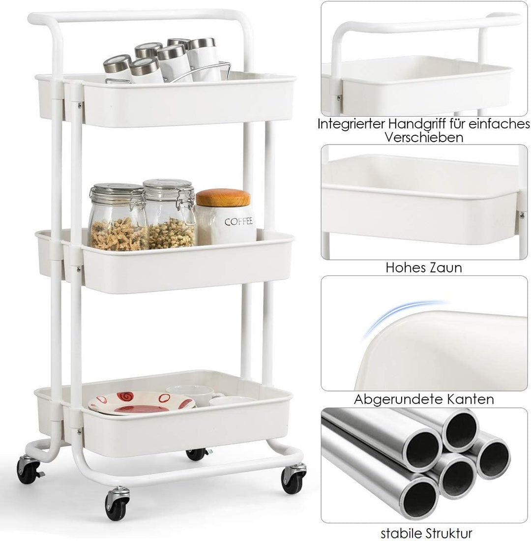 - 【Grosser & praktischer Mehrzweckwagen】Kommt mit 3 Körben und hohen Seitenwänden, sodass alle Gegenstände sicher sind und nicht herunterfallen können. Körbe haben ein kleines Abflussluch, sodass sie besser zu reinigen sind. Der Wagen ist mit bis