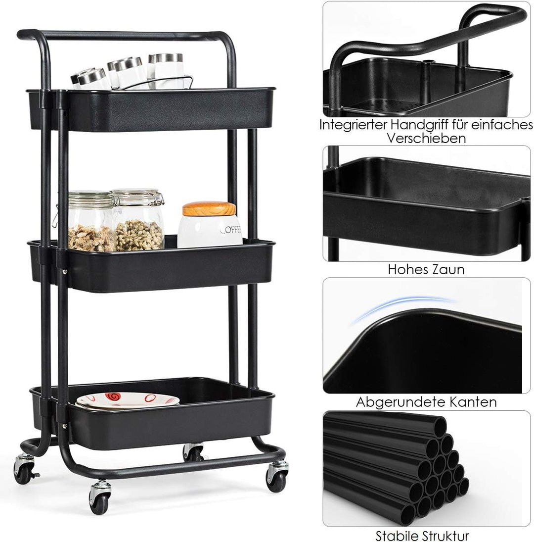 - 【Grosser & praktischer Mehrzweckwagen】Kommt mit 3 Körben und hohen Seitenwänden, sodass alle Gegenstände sicher sind und nicht herunterfallen können. Körbe haben ein kleines Abflussluch, sodass sie besser zu reinigen sind. Der Wagen ist mit bis