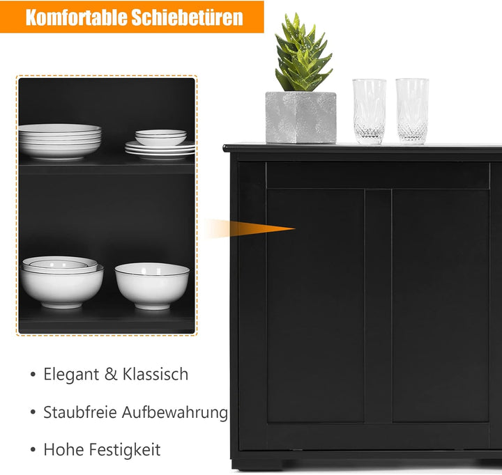 - 【Höhenverstellbarer Einlegeboden】Der Einlegeboden ist höhenverstellbar, und kann ganz nach individuellem Wunsch angepasst werden. Mit den Schiebetüren ist die Sideboard einfach zu öffnen und zu schliessen.