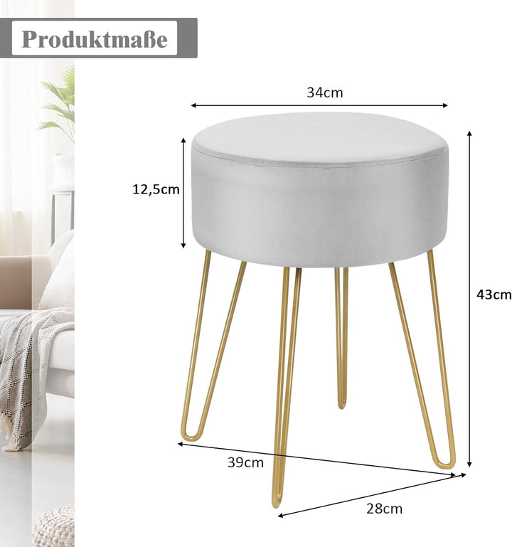 - 【Leichtes & platzsparendes Design】Der Samthocker ist leicht, wodurch er sich bequem tragen und verrücken lässt. Darüber hinaus zeichnet er sich durch sein Design ohne Lehne aus, das es Ihnen erlaubt, den Hocker platzsparend direkt unter den Tisch