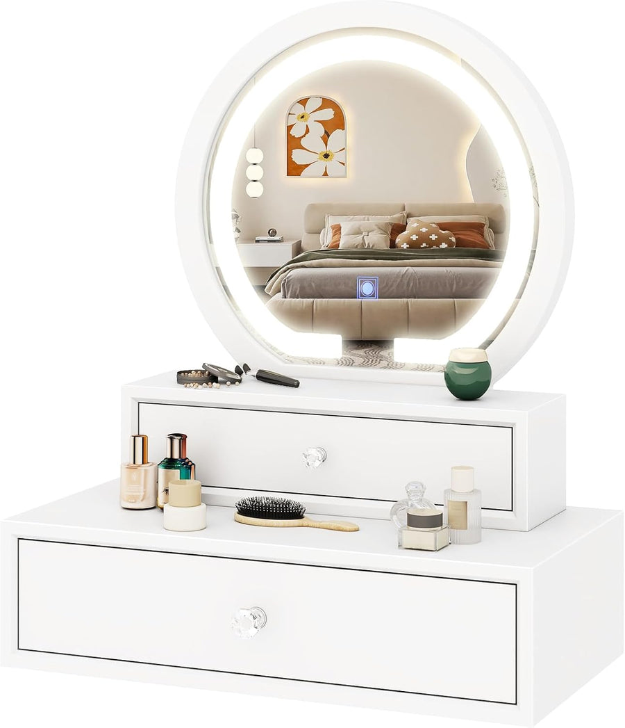 - 【Genügend Stauraum & Freie Anordnung】 Ausgestattet mit zwei grossen Schubladen, bietet dieser Make-up Spiegel genügend Platz, um all Ihre Kosmetikartikel ordentlich zu halten. Ausserdem können die Schubladen ebenfalls einfach vom Spiegel gelöst