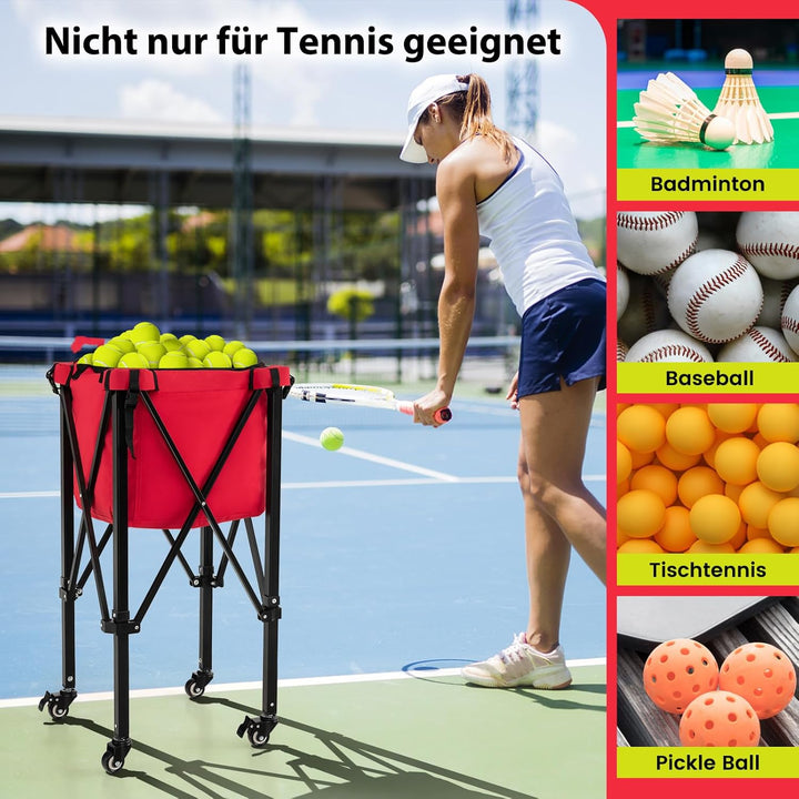 - 【Nicht nur für Tennisbälle】Dieser Mehrzweck-Ballwagen kann eine Vielzahl von Bällen für verschiedene Sportarten wie Badminton, Baseball, Tischtennis, Pickleball usw. aufnehmen und aufbewahren. Er ist ein perfektes Geschenk für Tennisspieler oder