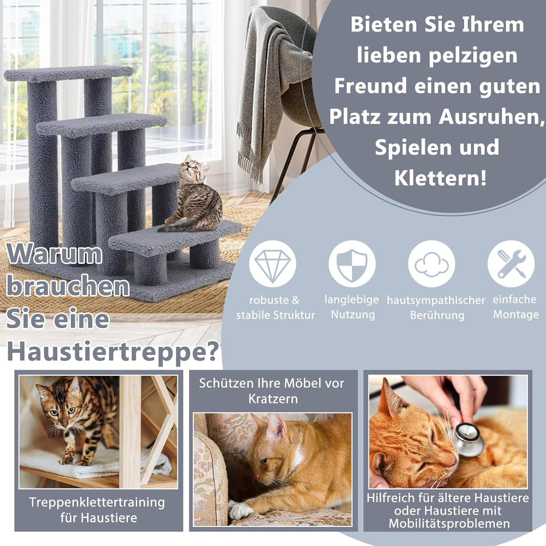 - 😻【Gute Standfestigkeit】Die fest Struktur der Katzentreppe sorgt für sehr sicheren Stand. Unsere Haustiertreppe ist geeignet für Haustier bis 25 kg.