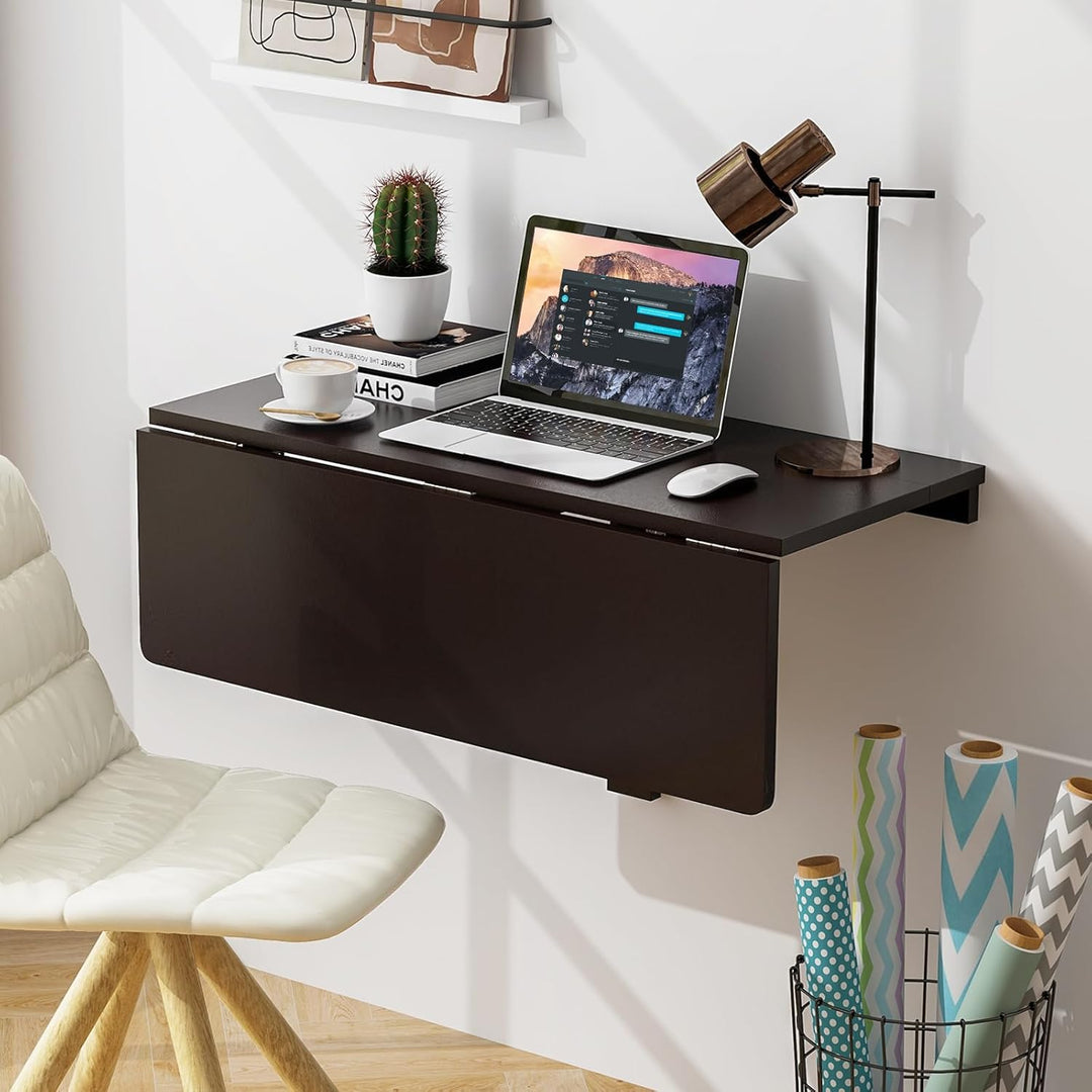 • 【Zwei Faltmodi】Es gibt zwei Möglichkeiten zum Falten. Sie können die Grösse des Desktops auswählen, die Sie benötigen. Wenn nur die Hälfte gefaltet ist, kann der Wandtisch als Wandrahmen verwendet werden, um Bücher, Tassen, Spielzeug,