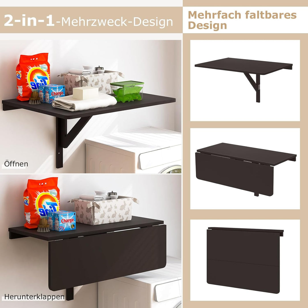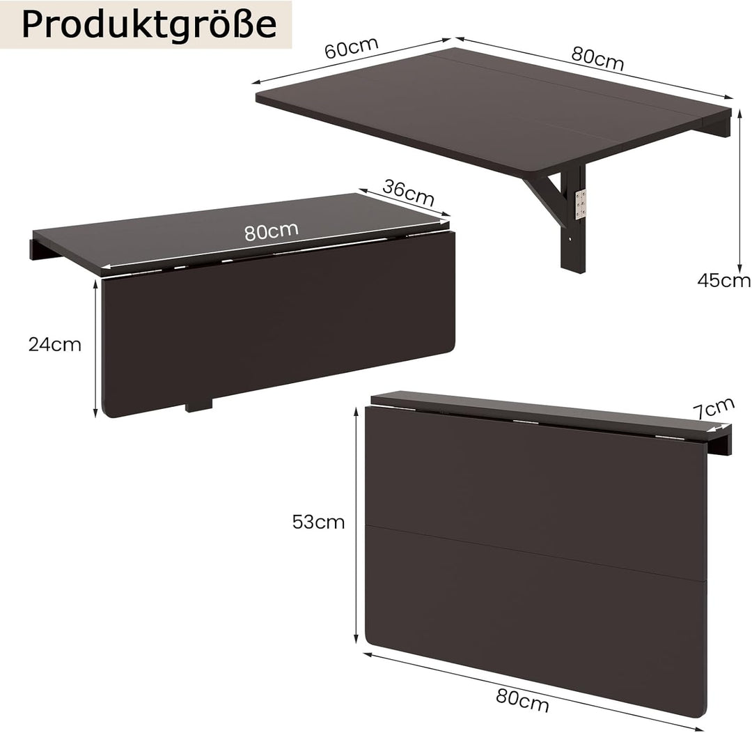 • 【Platzsparendes Design】Aufgrund der Faltfunktion eignet der Wandklapptisch sich gut für die Räume mit wenigem Platz. Beim Nichtgebrauch können Sie den Wandtisch schnell klappen.