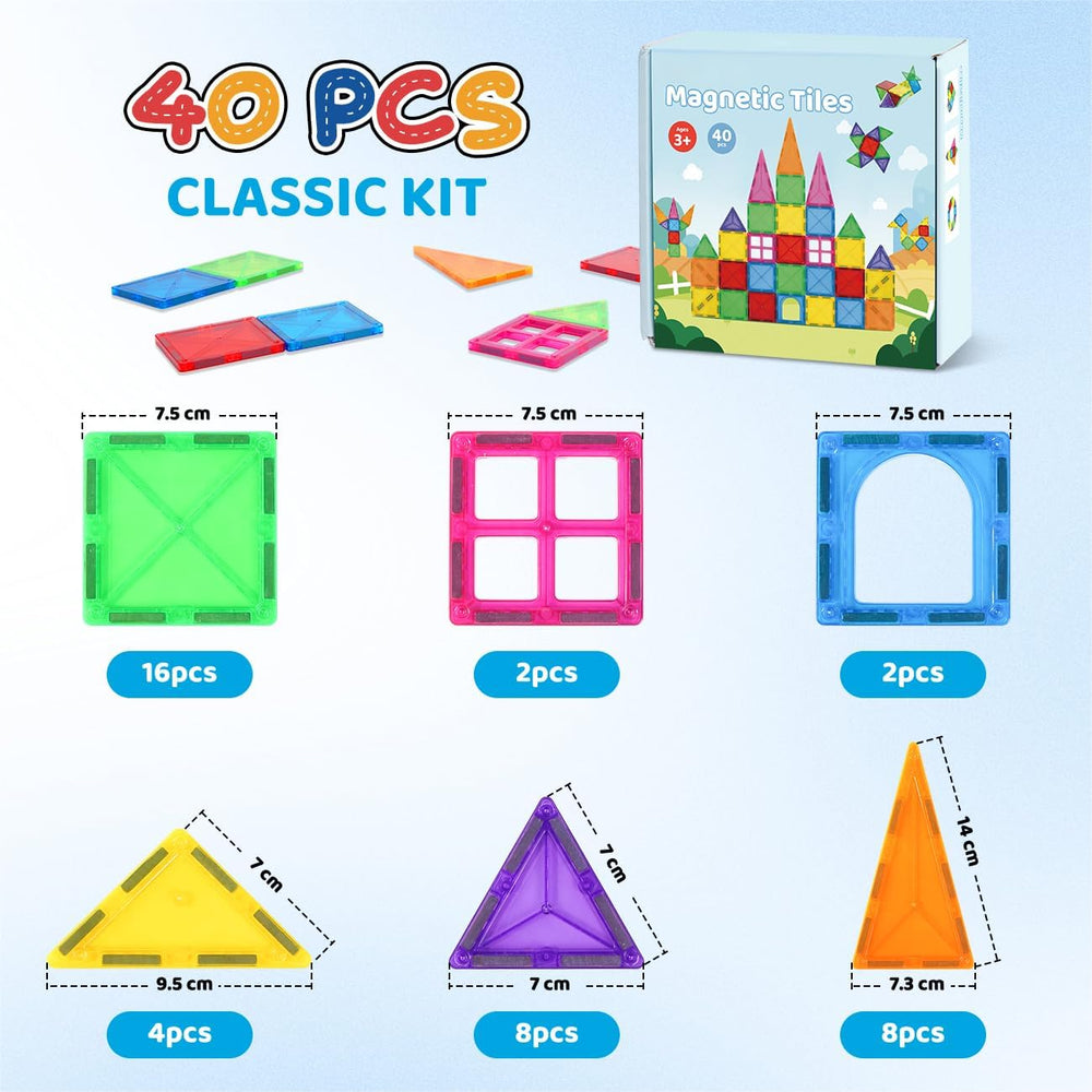 - 【Grossartiges magnetischen Anfängerset】Mit 40 magnetischen Fliesen in einer Vielzahl von Formen und Regenbogenfarben ist dieses magnetische Bausteinset die perfekte Option, um Ihre magnetische Fliesensammlung zu beginnen, mehr kreative Ideen zu
