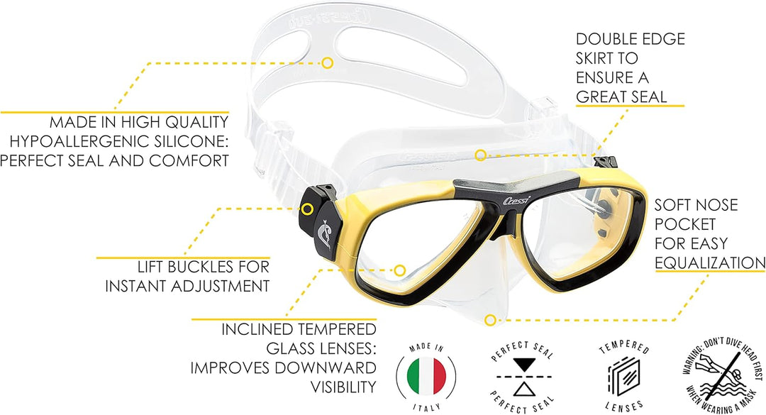 - Weiche und komfortable Dichtlippen verhinden das Eindringen von Wasser; Geringes Innenvolumen gewährleistet leichteres Ausblasen der Tauchmaske unter Wasser