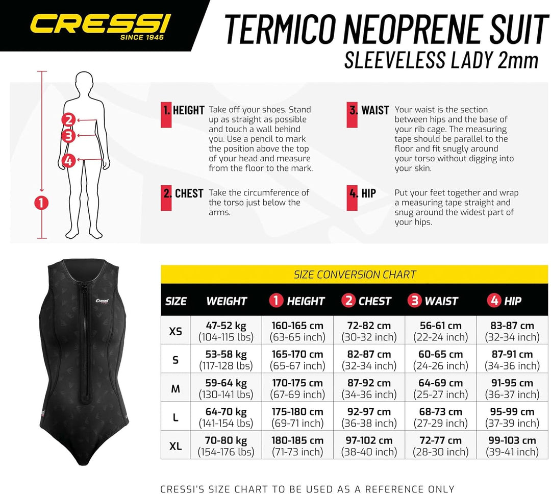 • Einteiliger Tauchbadeanzug für Damen: Aus weichem, doppelt gepolstertem Neopren 2 mm ist der Termico für Temperaturen zwischen 18 und 26°C empfohlen. Er erlaubt dank seines besonderen Schnitts und des dehnfähigen Materials eine grosse