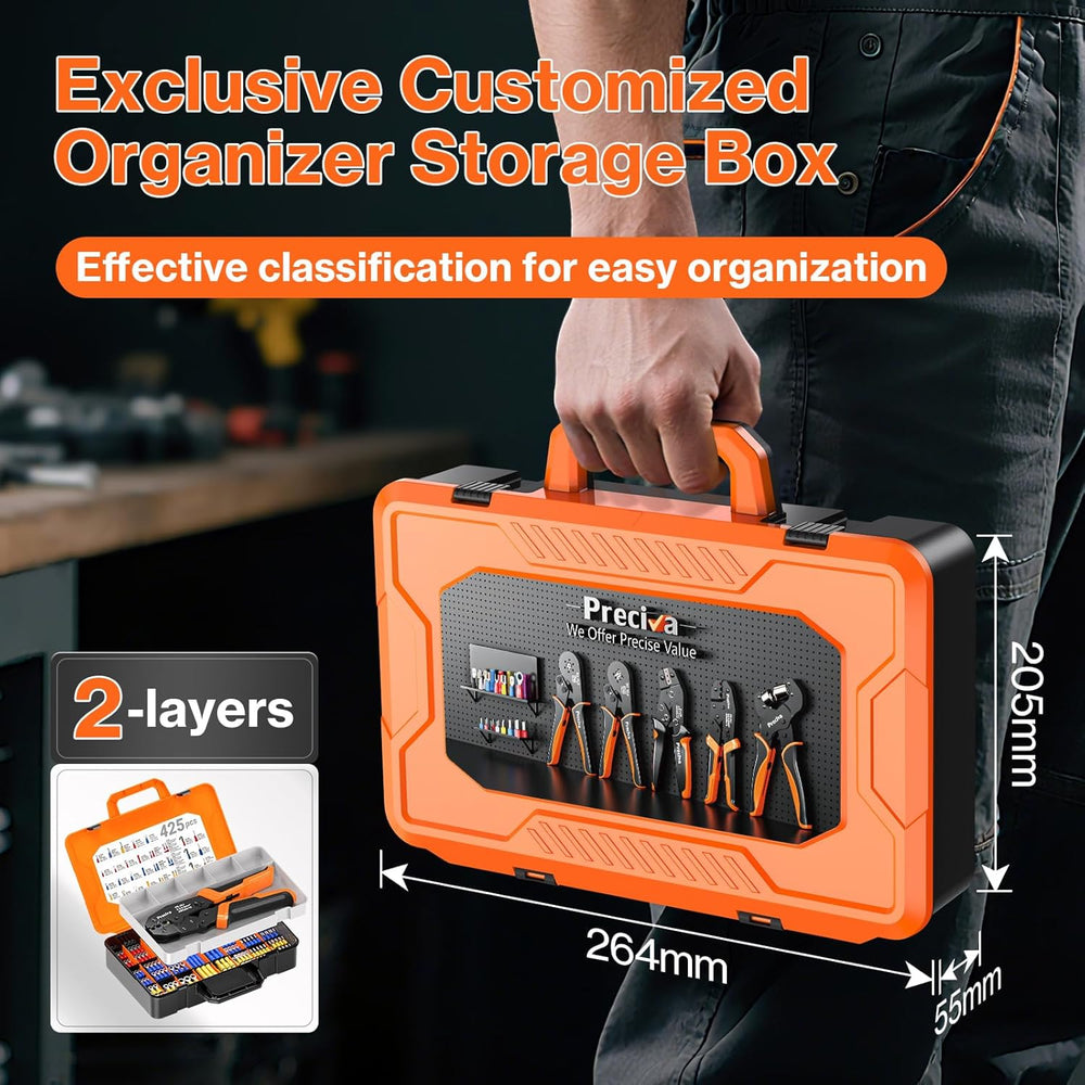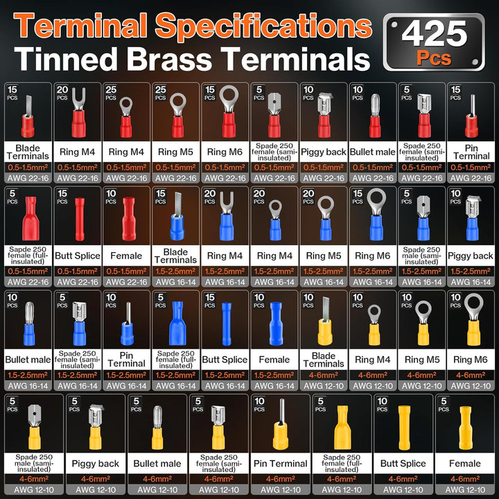 - โ ๐๐ผ๐บ๐ฝ๐น๐ฒ๐๐๐๐ฒ๐ ๐บ๐ถ๐ ๐ฐ๐ฎ๐ฑ ๐ฉ๐ฒ๐ฟ๐ฏ๐ถ๐ป๐ฑ๐ฒ๐ฟ๐ป: Professionelle Crimpzange inkl. 425 farbcodierten Kabelverbindern (rot/blau/gelb) fรผr Querschnitte 0,5-6 mmยฒ (AWG20-10) โ ideal fรผr