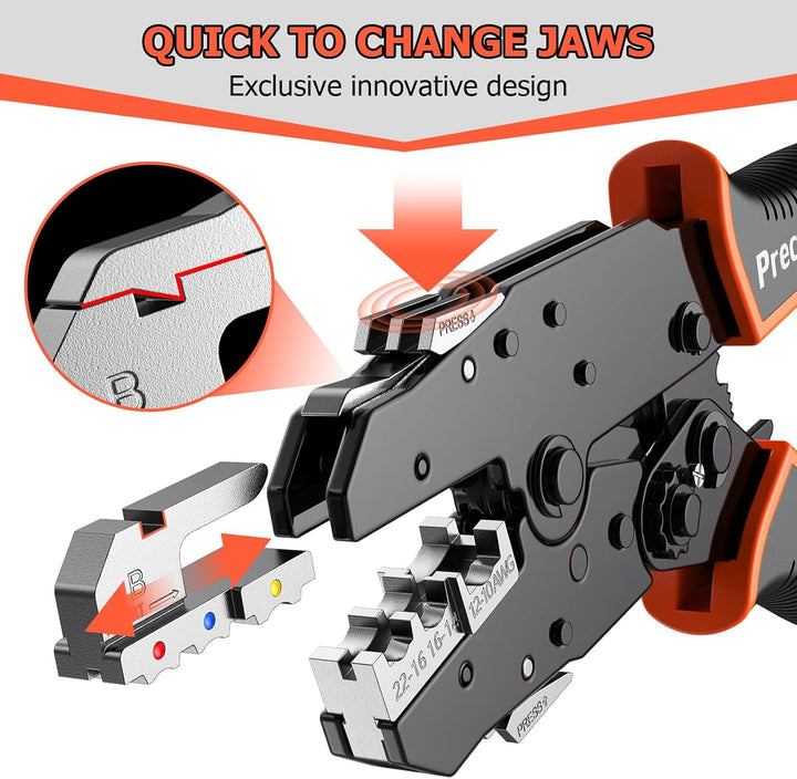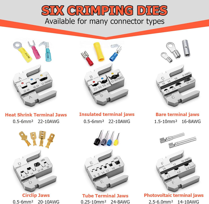 - Hervorragende Verarbeitung: Mit fortschrittlicher metallurgischer Pulverproduktionstechnologie wird jede der 6 Crimpbacken in diesem Crimpzangen-Set sorgfÀltig hergestellt. Dies gewÀhrleistet eine hohe PrÀzision und Haltbarkeit und bietet Ihnen ein