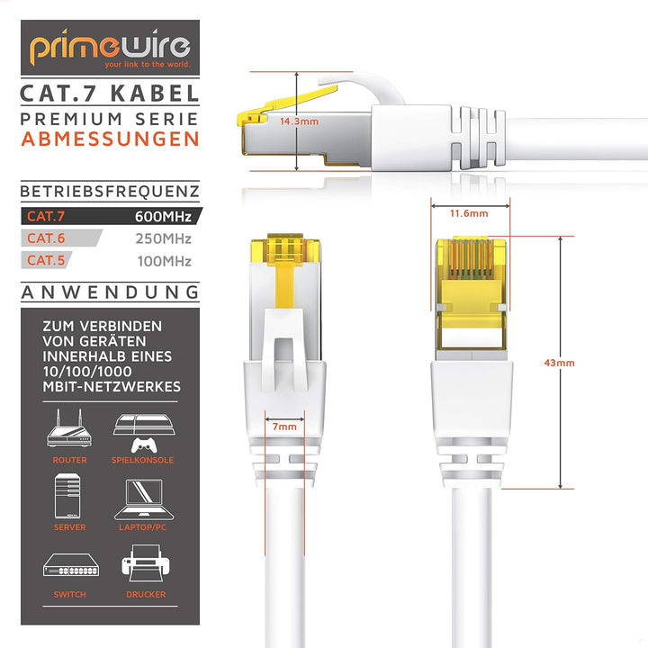 - Primewire - 10 x 0,25 m CAT 7 Netzwerkkabel | Cat 7 Rohkabel mit 2 x RJ45 Steckern (abwärts-/aufwärtskompatibel) | Netzwerkkabel, Patch-Kabel | Stecker mit Knickschutzhülle