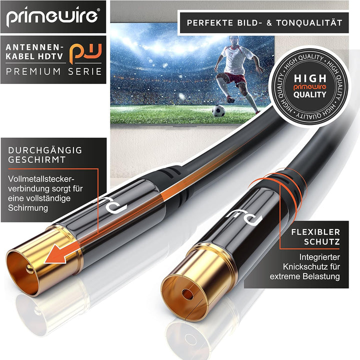 - Modellbezeichnung: Primewire 10 m Premium TV-Antennenkabel / TV (Koax)-Stecker zu TV (Koax)-Buchse (gerade) | Übertragung von analogen und digitalen Signalen wie DVB-T und DVB-T2, Radio (UKW/ DAB / DAB+) sowie Kabelfernsehen analog/digital SD/digital HD