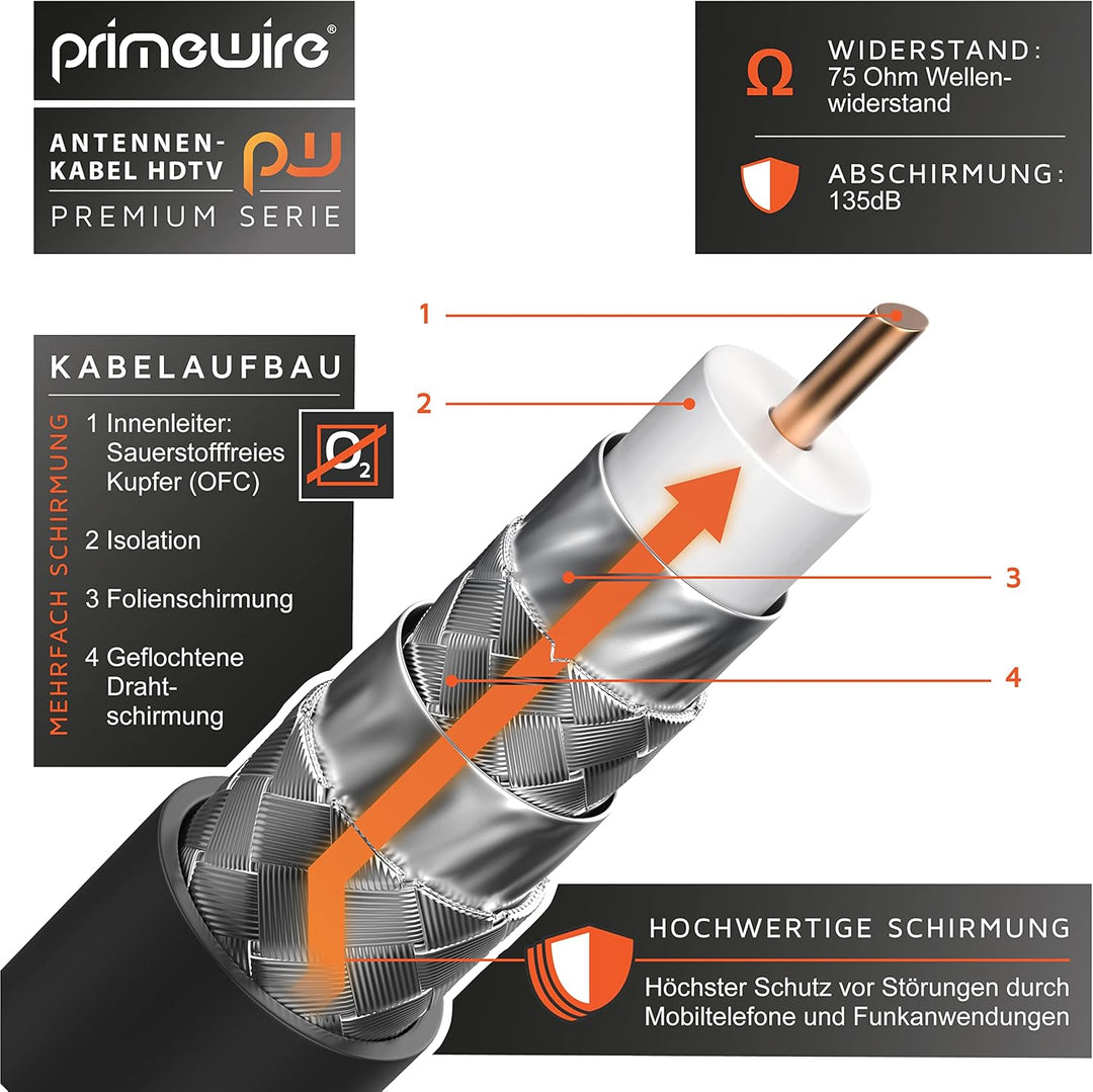 - Kabellänge: 10 m ( Meter ) | Farbe: schwarz | Lieferumfang: Primewire 10,0m Premium TV-Antennenkabel