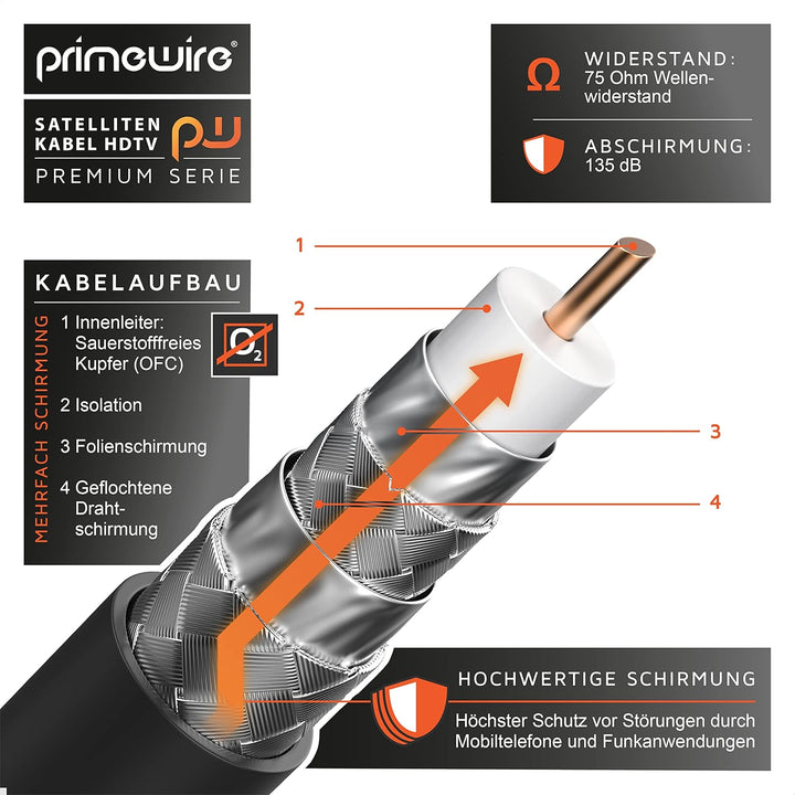 - Modellbezeichnung: Primewire 7,5m ( Meter) Premium TV-Satellitenkabel (90° gewinkelt) / F-Stecker (male) gerade / F-Winkelstecker 90°(male) | Übertragung von analogen und digitalen Signalen sowie DVB-S