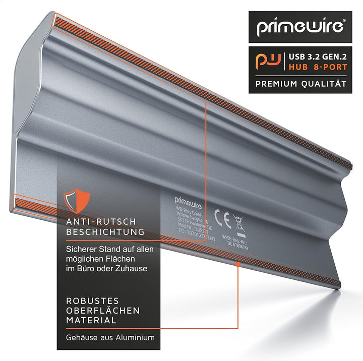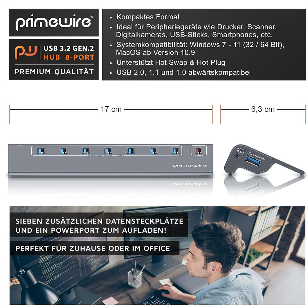 - 7 x DATENPORTS UND 1 x LADEPORT: Primewire 8 Port USB-Hub neuester Generation. Dank USB 3.2 Gen2-Standard mit Datentransferraten von bis zu 10 Gbit/s! Ideal für Desktop-PCs, Notebooks, Tablets und Laptops. | Ausserdem kompatibel mit Xbox One, Series