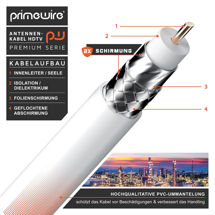 - Primewire Premium TV-Antennenkabel. Koax-Buchse mit Winkel 90° auf Koax-Stecker (gerade). | Überträgt analoge und digitale Signale wie DVB-T und DVB-T2, Radio (UKW/ DAB / DAB+) sowie Kabelfernsehen analog/digital HD/4k UHD I | Stellt eine