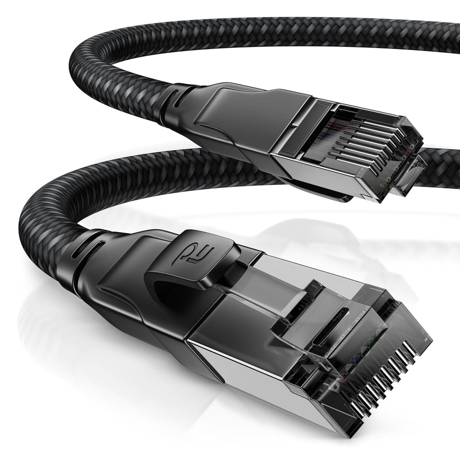 CSL CAT8.1 Netzwerkkabel 40 Gbits - 10m - Baumwollmantel - Black Series - LAN Kabel Patchkabel RJ45