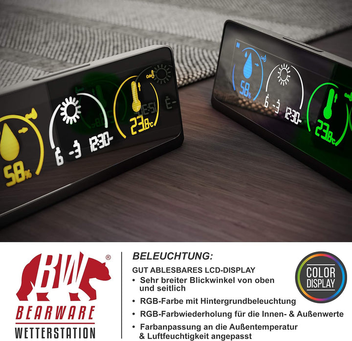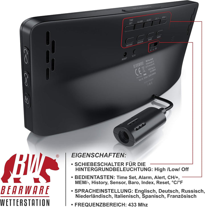 - Die Bearware Funkwetterstation liefert alle wichtigen Informationen inklusive präzisem DCF-Zeitsignal. Sie können den regionalen Luftdruck als Referenzwert eingeben. Damit erhalten Sie Prognosen, die unabhängig davon sind, ob Sie das Gerät auf Höhe