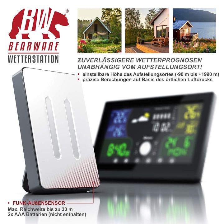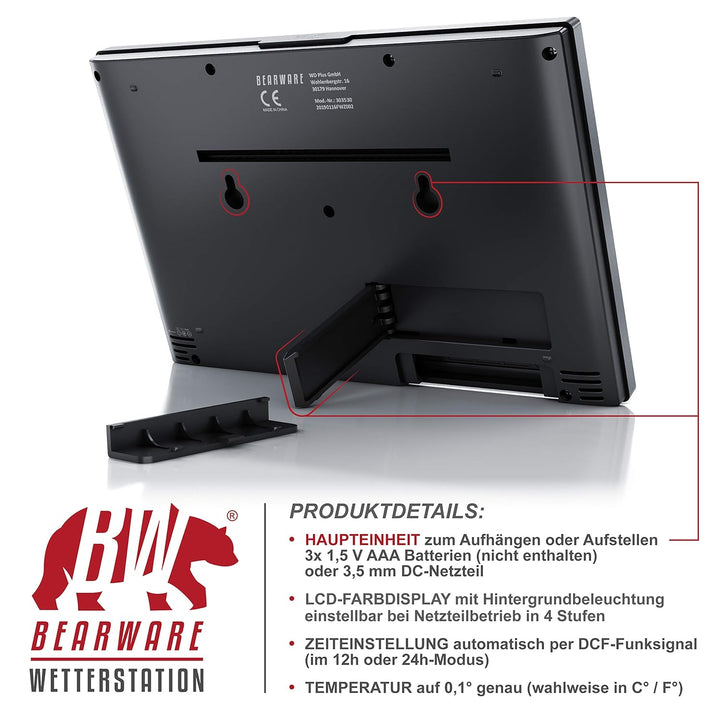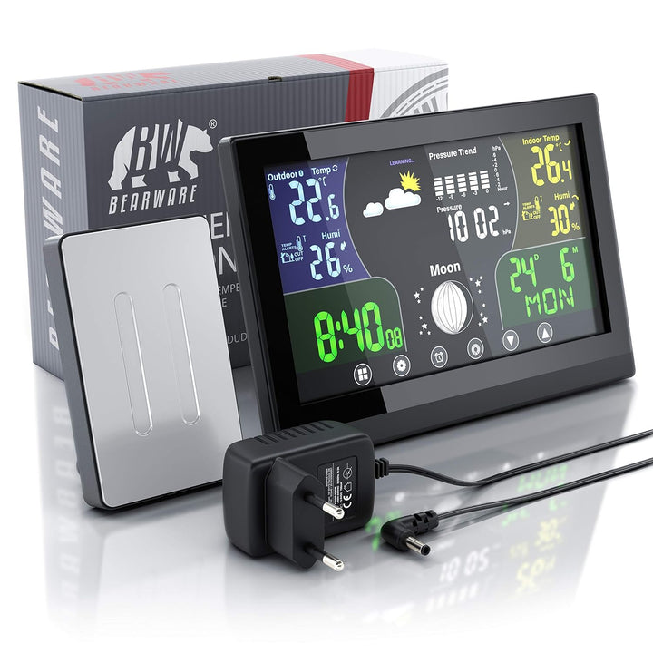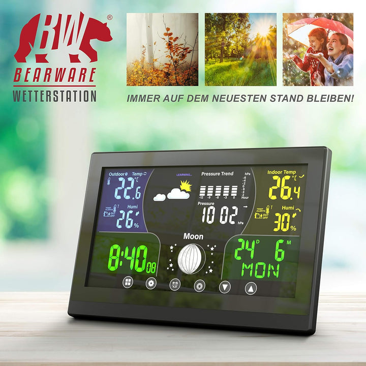 • Starten Sie mit der Wetterstation gut gelaunt in den Tag. Lassen Sie sich von der Weckfunktion munter machen und checken Sie wichtige Wetterdaten auf dem grossen LCD-Farbdisplay. Ihnen werden u.a. die Luftfeuchtigkeit, der Luftdruck, die Innen- und