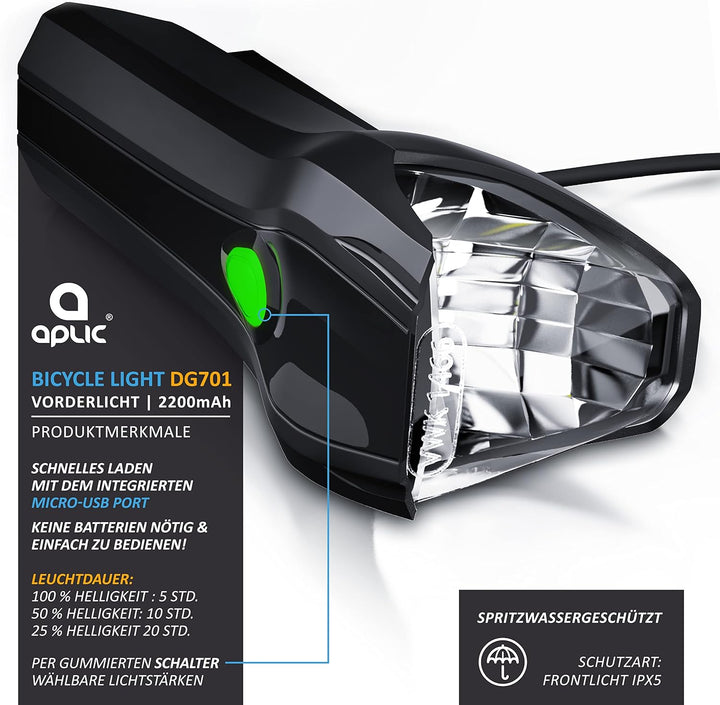 - Das Aplic Akkulicht bietet eine enorme Helligkeit von 50 Lux und leuchtet die Fahrstrecke vor Ihnen bestens aus. Aufgrund der durchdachten Spiegelgeometrie werden entgegenkommende Fahrer nicht geblendet. StVZO-zugelassen. | 303723