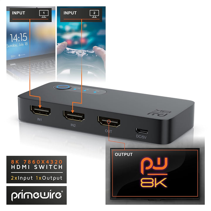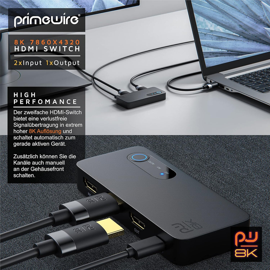 - HIGH-END-SWITCH FÜR 8K ULTRA HD II: maximale Auflösung für höchsten Videogenuss. Eine Bildqualität so gut wie in den besten Kinos. Mit dem professionellen 8K HDMI-Switch können Sie an einer HDMI-Schnittstelle 2 Zuspielgeräte anschliessen und das