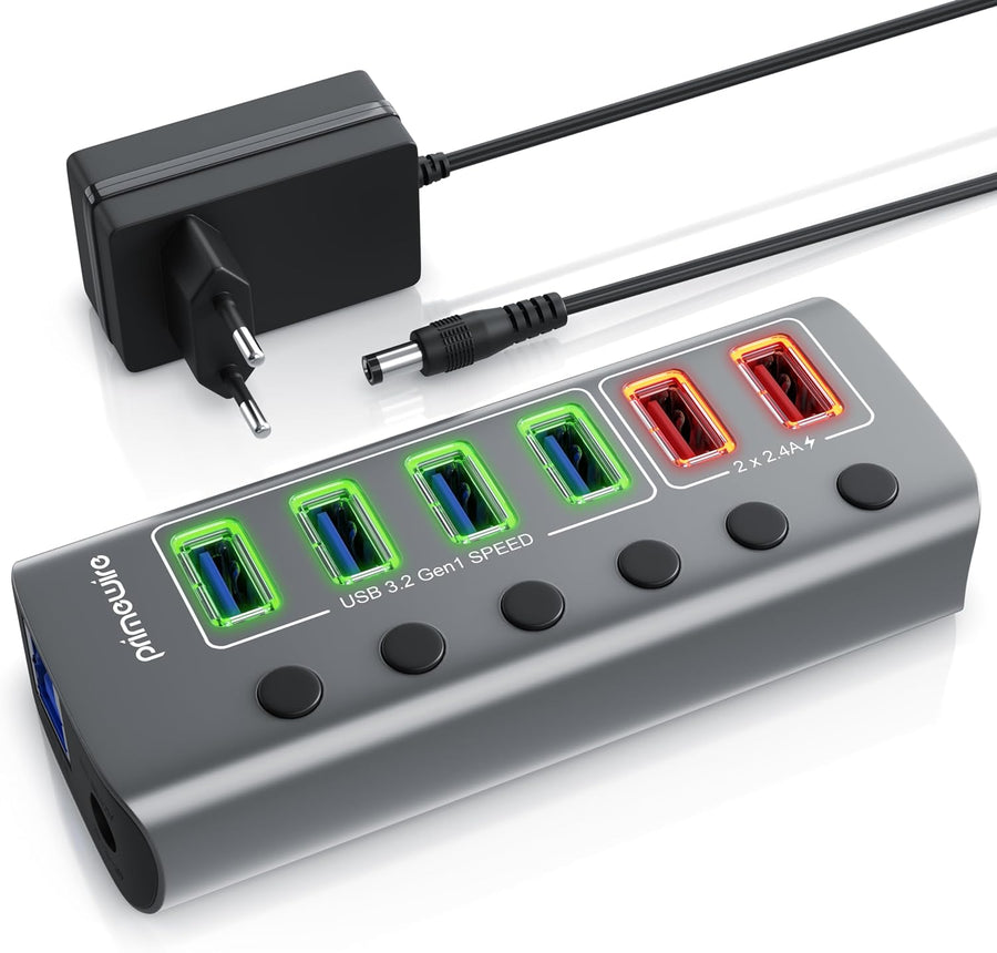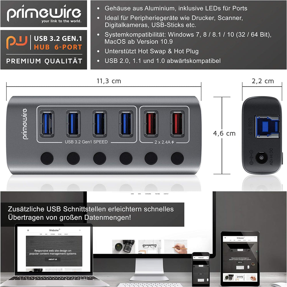 - Mehr Ports, mehr Ladepower: Der Primewire 6 Port USB-Hub erweitert eine einzige USB 3.2. Gen.1-Schnittstelle um vier Datensteckplätze und zwei PowerPorts! Ideal für alle Windows Desktop-PCs, Notebooks, Laptops sowie Macbooks (bis 2015), Mac Mini und