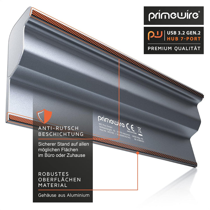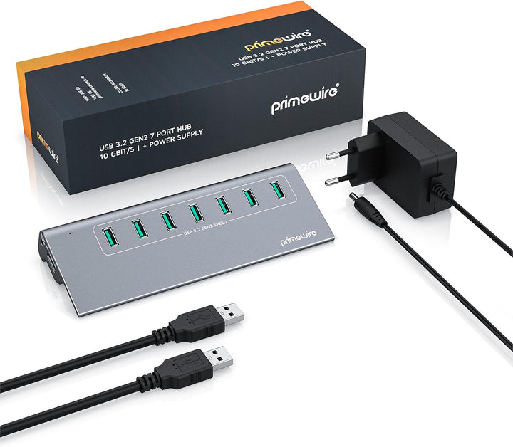 - AKTIVER USB 7-PORT-HUB DER NEUESTEN GENERATION: Der PRIMEWIRE 7 Port Hub erweitert eine einzige USB-Schnittstelle auf insgesamt sieben Steckplätze! Dank USB 3.2 Gen2-Standard (früher 3.1) mit Datentransferraten von bis zu 10 Gbit/s! Ideal für