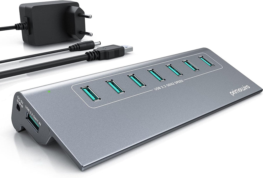 - PRODUKTEIGENSCHAFTEN: 7-fach USB-Hub mit schnellem Datentransfer bis zu 10 Gbit/s | aktiver Betrieb mit 5V-Netzteil | unterstützt Hot-Plug und Hot Swap | Plug & Play | USB 2.0, 1.1 und 1.0 abwärtskompatibel | blaue Power-LED zur Anzeige des