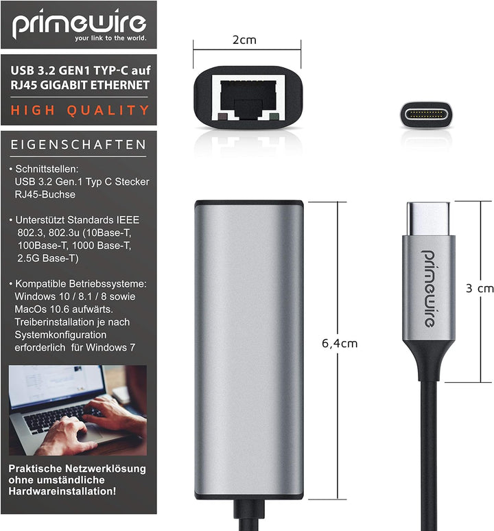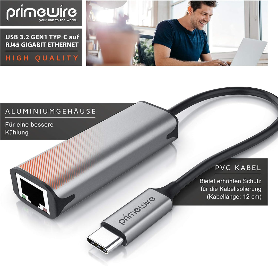 • Der USB-C auf RJ45 Adapter versorgt Ihr Notebook oder MacBook mit einem schnellen, kabelgebundenen Netzwerkzugang. Anzuschliessen ganz einfach über die moderne USB-C Schnittstelle (USB 3.2 Gen.1) bzw. Thunderbolt 3. Die günstige Lösung für das