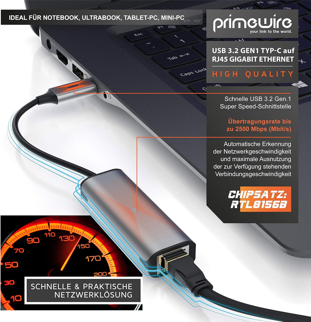 CSL - USB 3.2 Netzwerkadapter 2500 Mbps - USB C auf RJ45 Buchse - Gigabit Ethernet LAN Adapter – bis