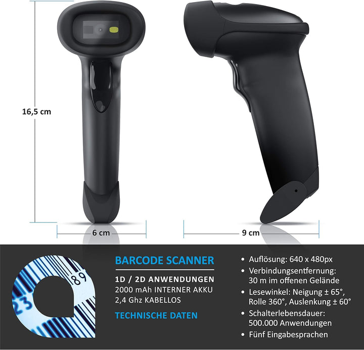 - 2000 mAh interner Akku. Ladezeit: 2 Stunden // kann 10 Stunden kontinuierlich mit einer Ladung arbeiten /scannen. | LED-Anzeige: Grün. Kann auch mit Kabel betrieben werden.