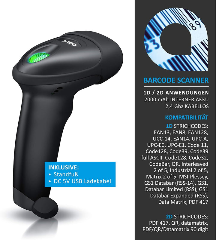 - Kabellos Barcodes Auslesen: Mit seiner Hochleistungs-Abtastung liest das Gerät von Aplic Barcodes nicht nur vom Papier, sondern sogar vom Flatscreen und Smartphone aus. Ideal für die Bezahlung in Geschäften und an Selbstzahl-Systemen. Er decodiert