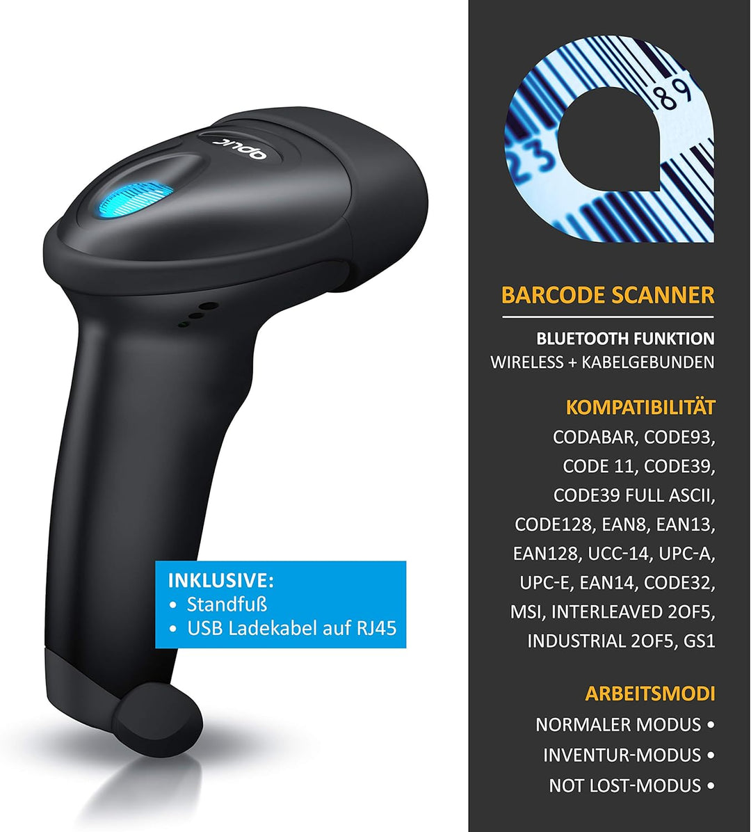 - Der Aplic 2D-Mehrzweck Handscanner decodiert viele Arten von 1D und 2D Barcodes in hoher Geschwindigkeit, einschliesslich QR, Data Matrix, PDF417 u.v.m. Mit seiner Hochleistungs-Abtastung liest er Barcodes auch vom Smartphone, Laptop und PC-Bildschirm