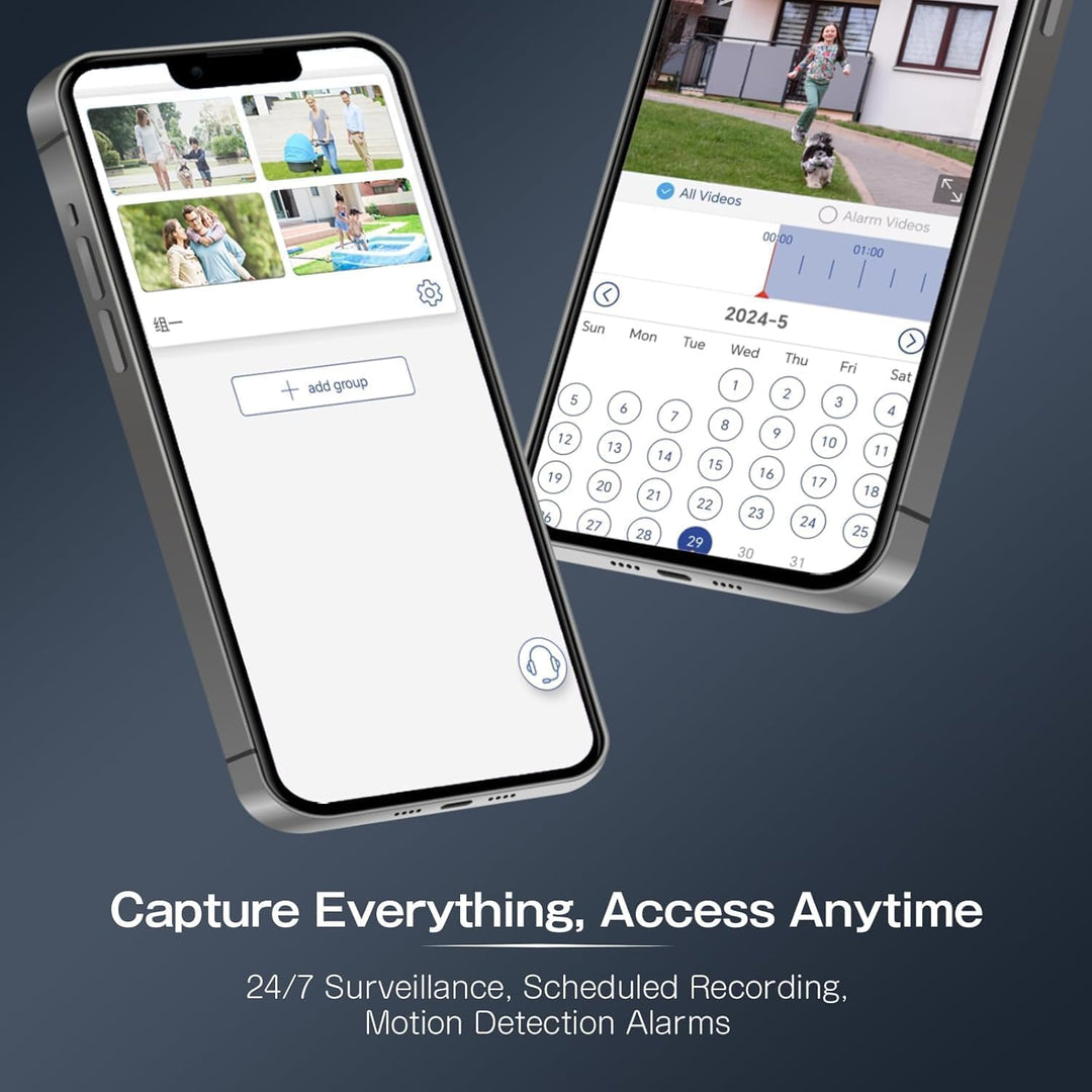 - 【2,5K 4MP QHD & 30M Farb-Nachtsicht】Diese überwachungskamera aussen wlan ist mit einer echten 2,5K Videoauflösung von 2560×1440P und einer Bildqualität von 4MP für kristallklare Bilder ausgestattet. Geniessen Sie den Fernzugriff auf 355° 90°