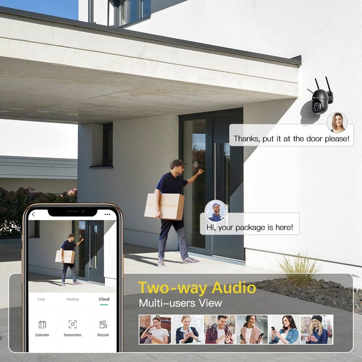 - 【Zwei-Wege-Audio & Mehrbenutzerfreigabe】Diese ptz überwachungskamera aussen 5g für den Aussenbereich verfügt über einen integrierten Lautsprecher und ein Mikrofon für Echtzeitkommunikation oder Warnung vor unerwünschten Eindringlingen, während