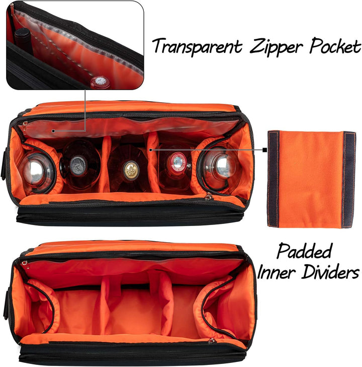 - Spirituosen Aufbewahrung: Das Hauptfach verfügt über 2 elastische Falttaschen für Cocktail-Shaker und Gläser. Ausserdem besitzt es 2 gepolsterte Trennwände mit Klebebändern, um das Hauptfach in 3 Teile für Alkohol oder zerbrechliche Gläser zu unterteilen. (Nur Tasche, ohne Cocktail Set)