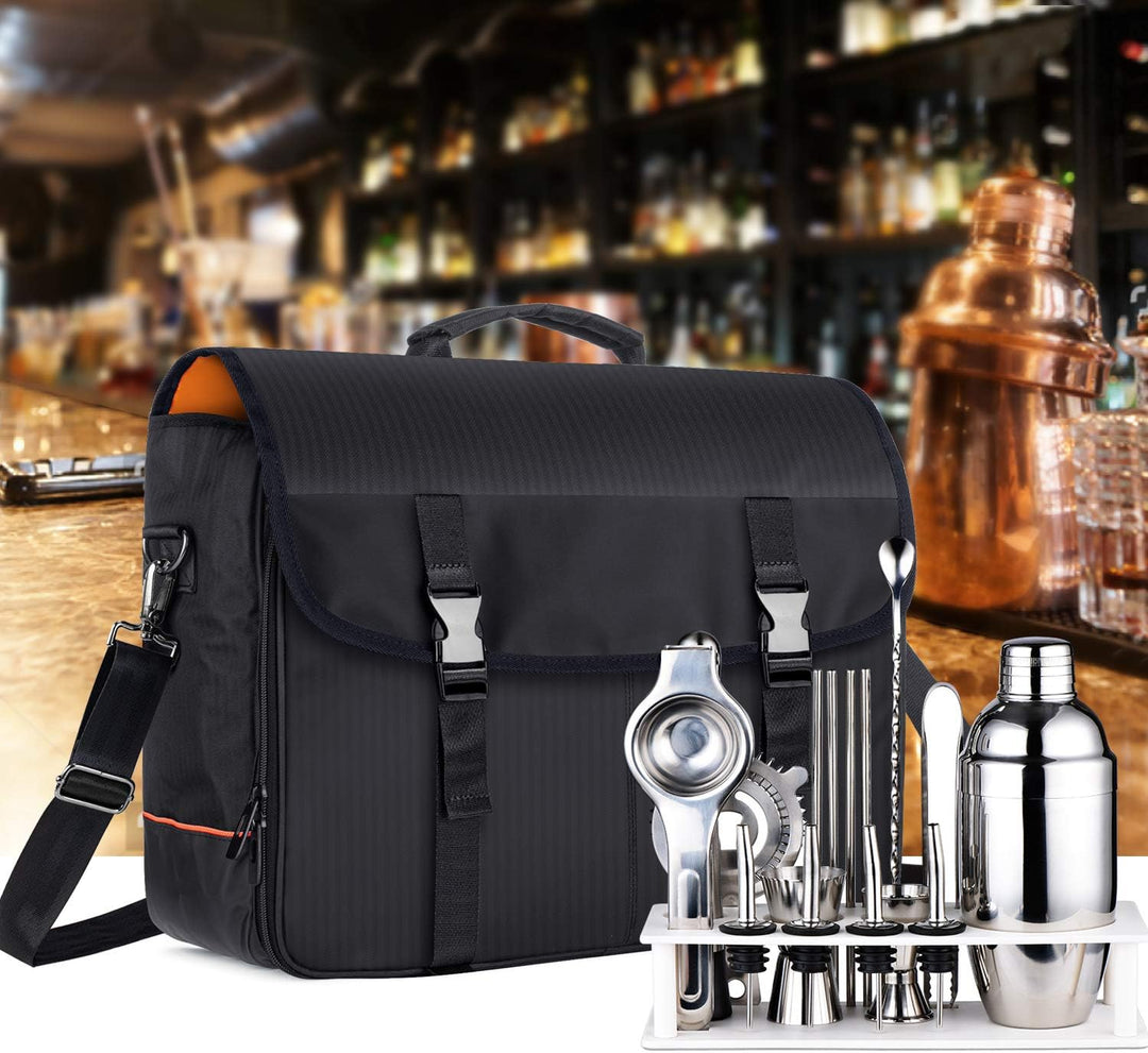 - Dimension: 40,7 x 16,5 x 33.1cm. Die Cocktail Set Reisetasche kann für Cocktail-Party, Weinpartys oder Hochzeit im Freien, Camping, Picknick, Urlaub usw. verwendet werden. Ideales Geschenk für Barkeeper-Anfänger, Amateur Bartender oder einen professionellen Bartender oder wer gerne Cocktail macht.