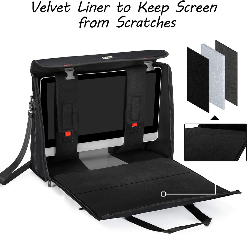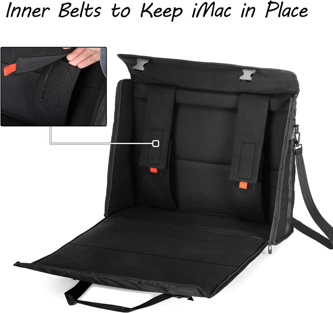 - GROSSE ÖFFNUNG: 68,6 x 21,6 x 59,7 cm. Diese iMac Reisetasche verfügt über 2 schnallen für eine bequeme Öffnung. Die Grosse Reissverschlussöffnung zum einfachen Ein- und Auspacken Ihres imac-Monitors.