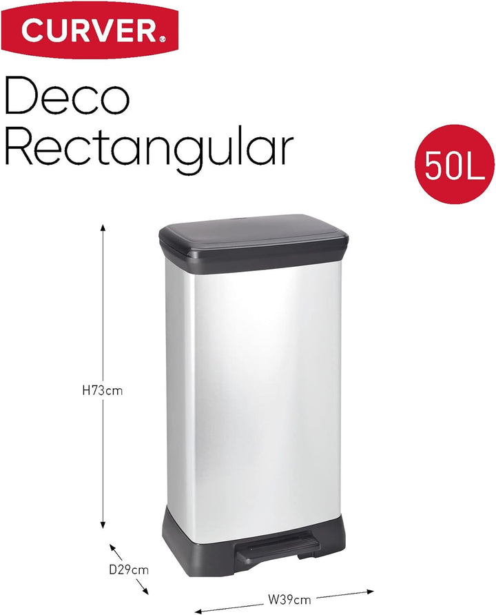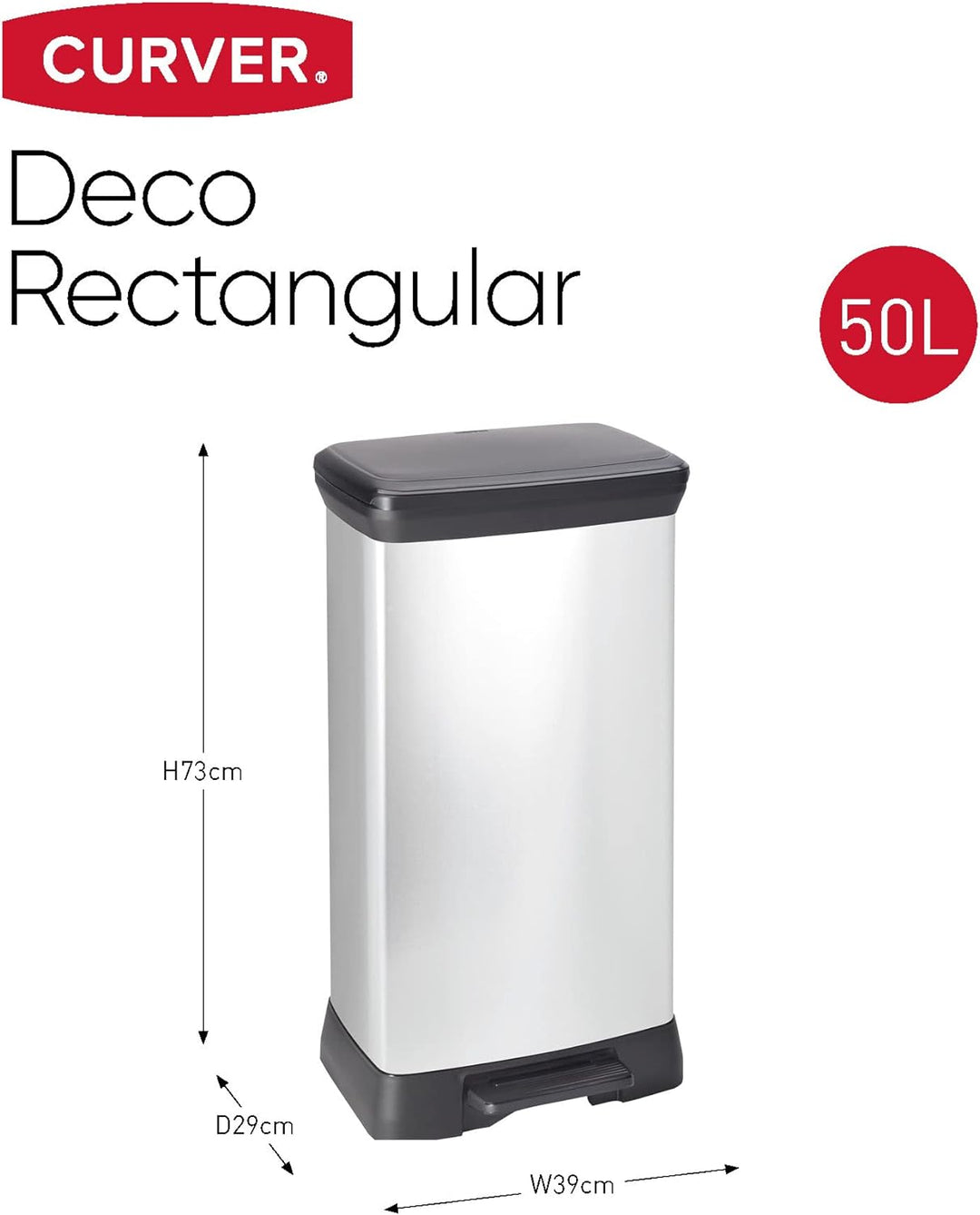 Curver 187177 Treteimer, rechteckig, 50 l, Polypropylen, 39 x 29 x 73 cm, Metall, 50 l, Metall