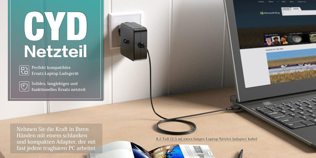 - ✅【Universal Notebook 8.2 Füsse (2.5m) Schnellere Ladungen ersetzen Adapter】CYD 45W AC adapter für laptop ladekabel hp HP pavilion 11 13 15;HP elitebook folio 1040 g1;HP stream 13 11 14;hp touchsmart 11 13 15;hp spectre ultrabook 13 15-db0011dx HP
