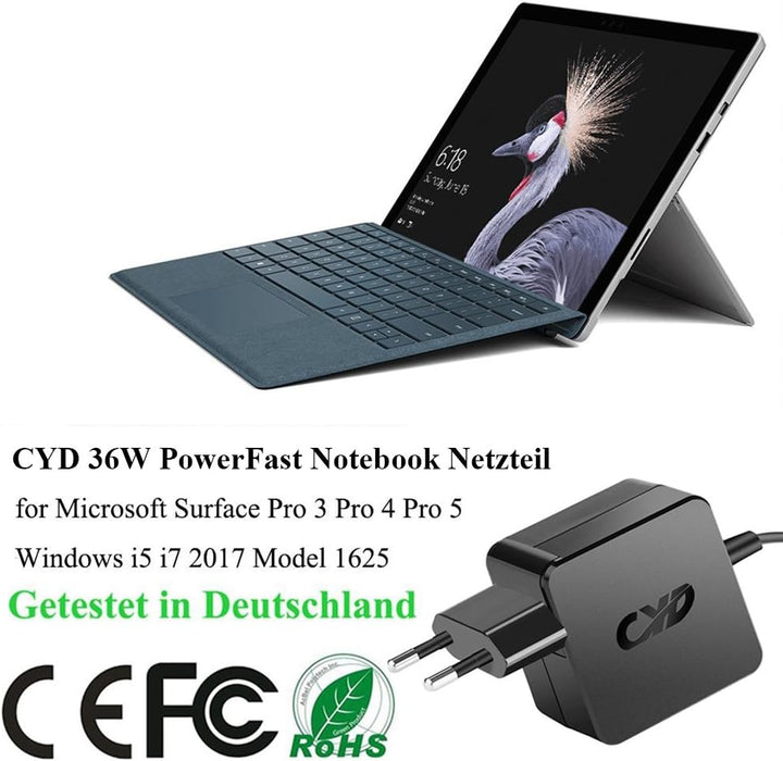 CYD Laptop-Ladekabel-Notebook Netzteil 36W 12V 2.58A für Microsoft Windows New Surface Pro 5 Pro 4 P