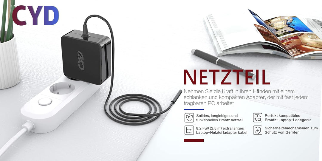 • ✅【Universal Notebook 5.25Ft(1.6m) Laptop Netzteil Adapterkabel】CYD 36W Laptop-Ladegerät AC adapter für Microsoft Surface Surface Laptop, Ladegerät Surface Pro, Ladegerät Surface Pro 3, Ladegerät Surface Pro 4, Ladegerät Surface Pro 5. Surface